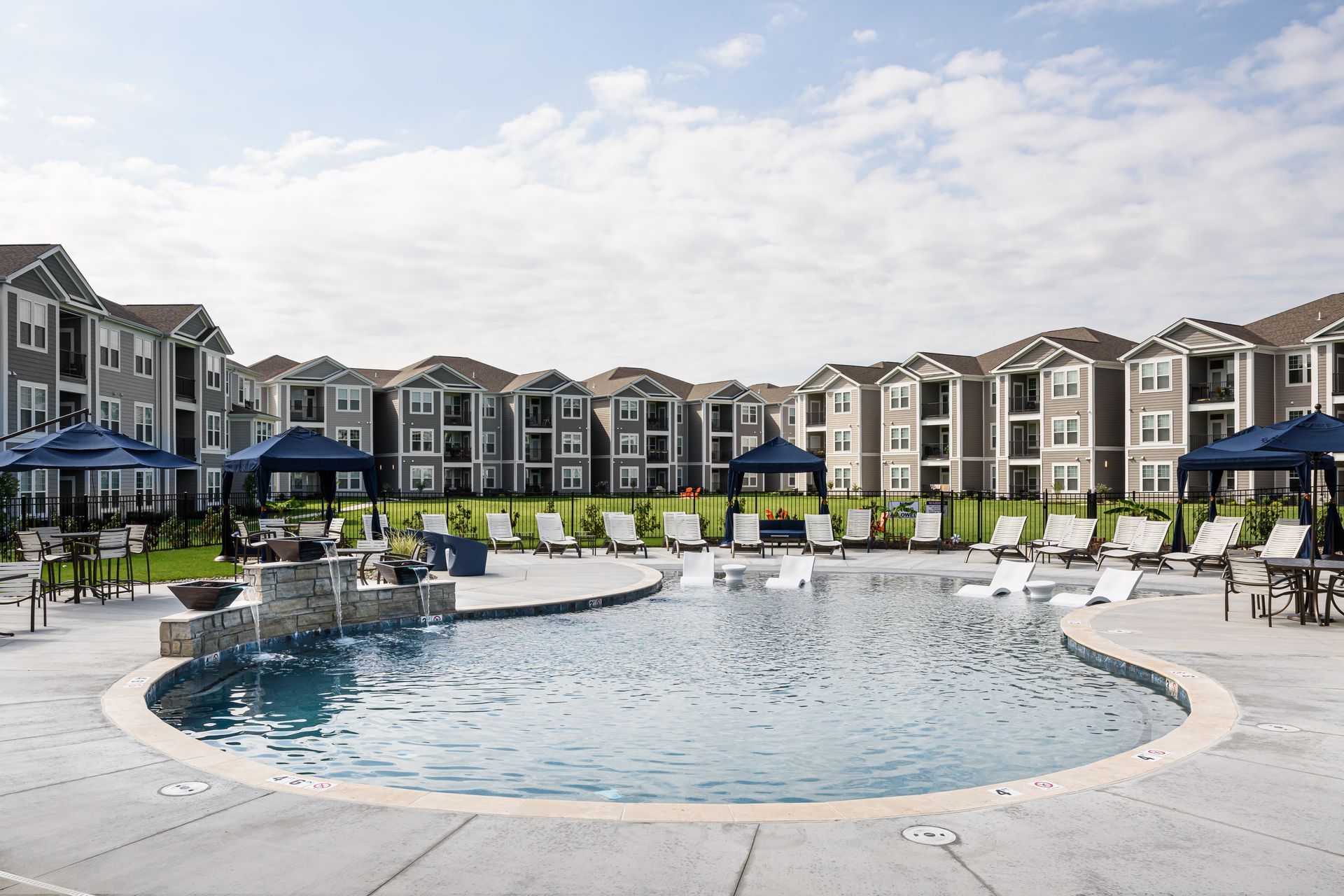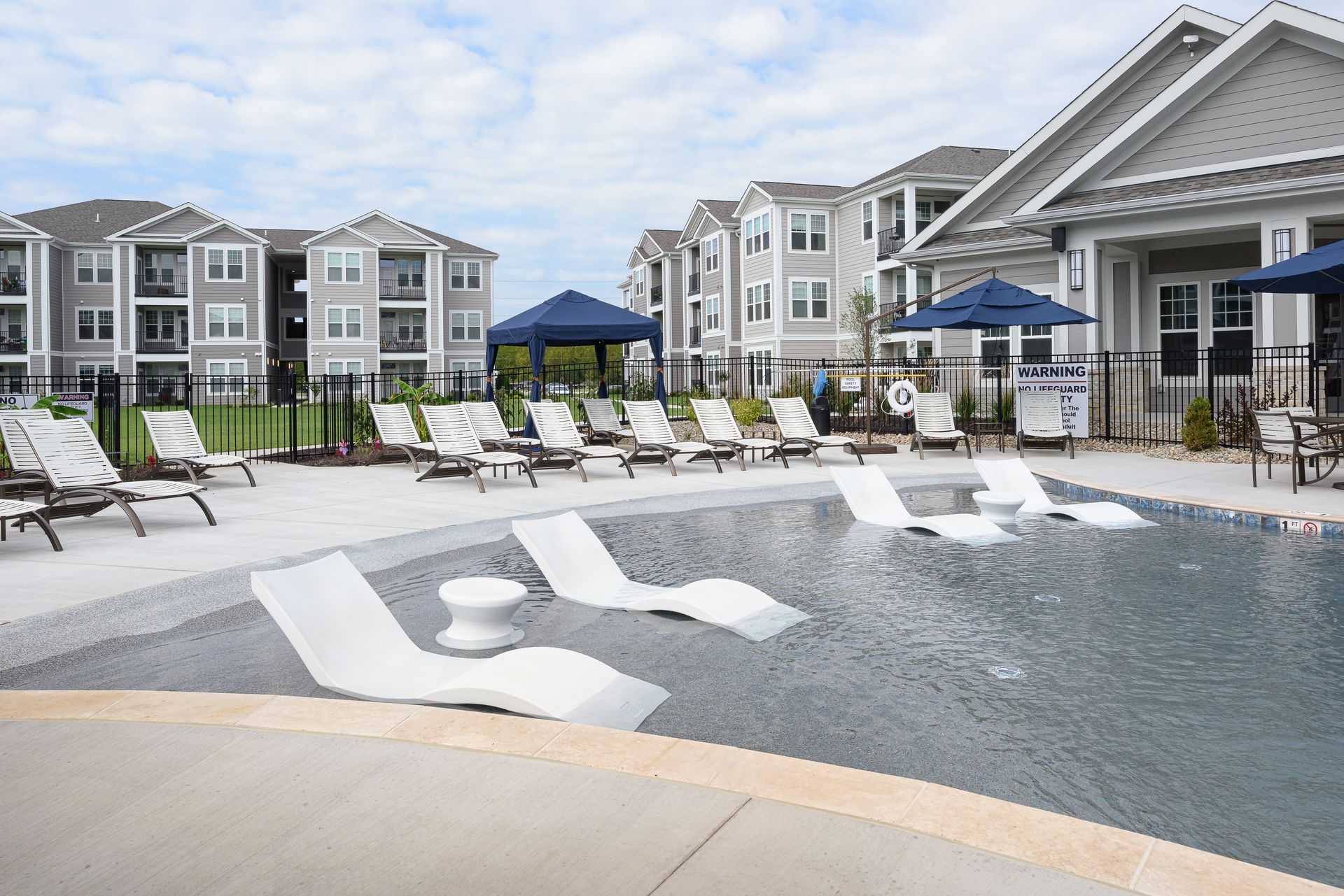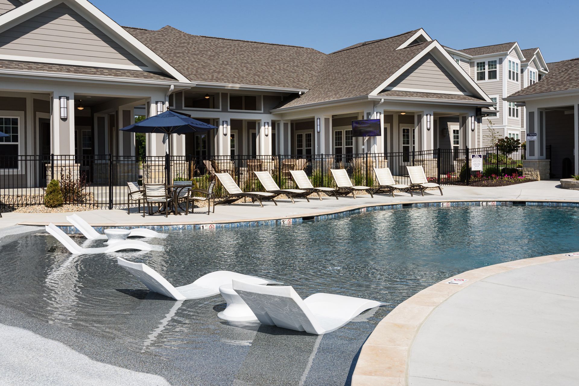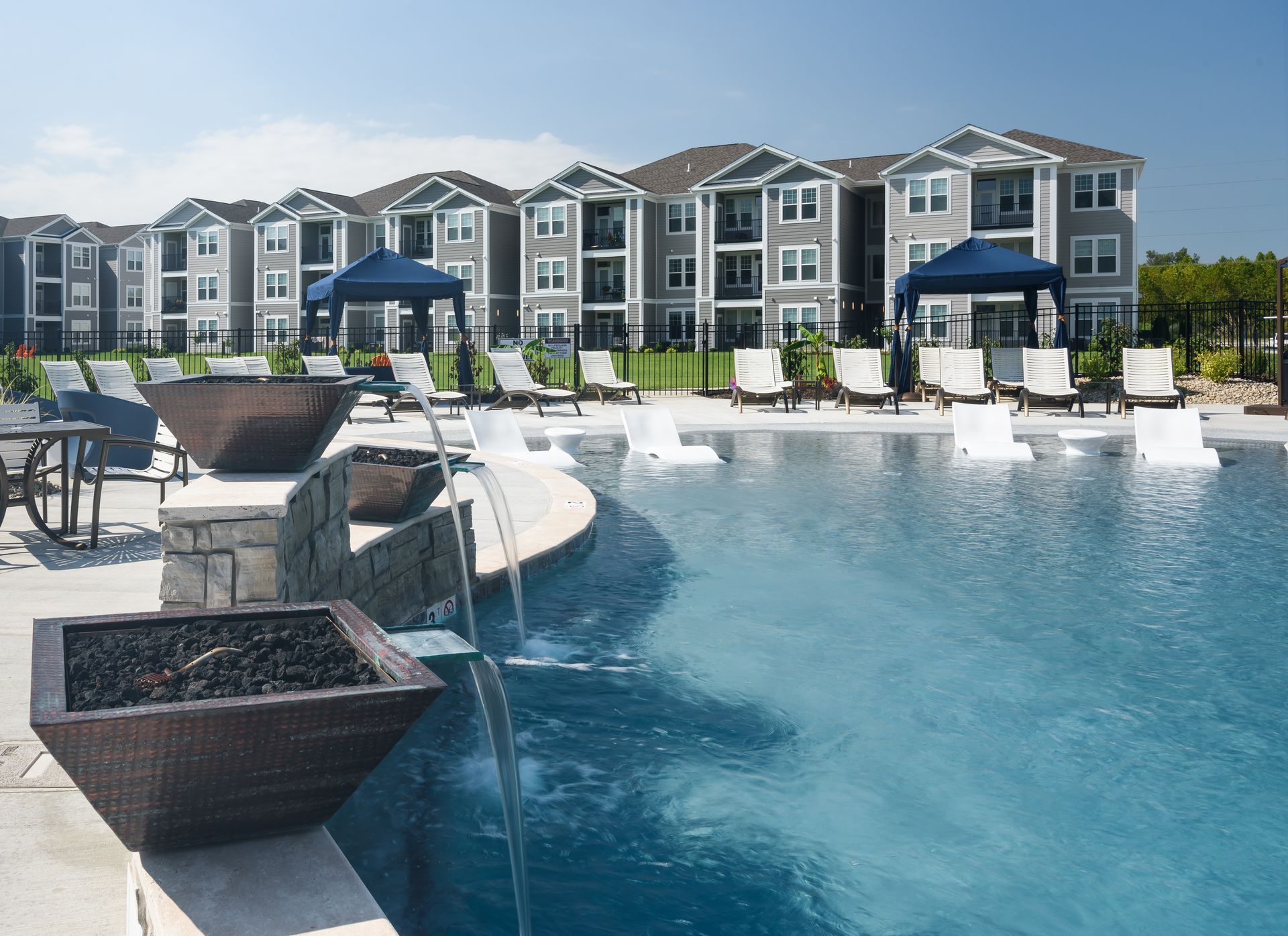 At Altair at the Preserve Apartments in O'Fallon, MO, breathtaking views and modern luxury await. Enjoy lush green spaces, a pet-friendly park, and a stylish yoga studio. Picture cozy evenings by the fire pit or lounging in private poolside cabanas. Imagine your life in our beautifully designed homes!