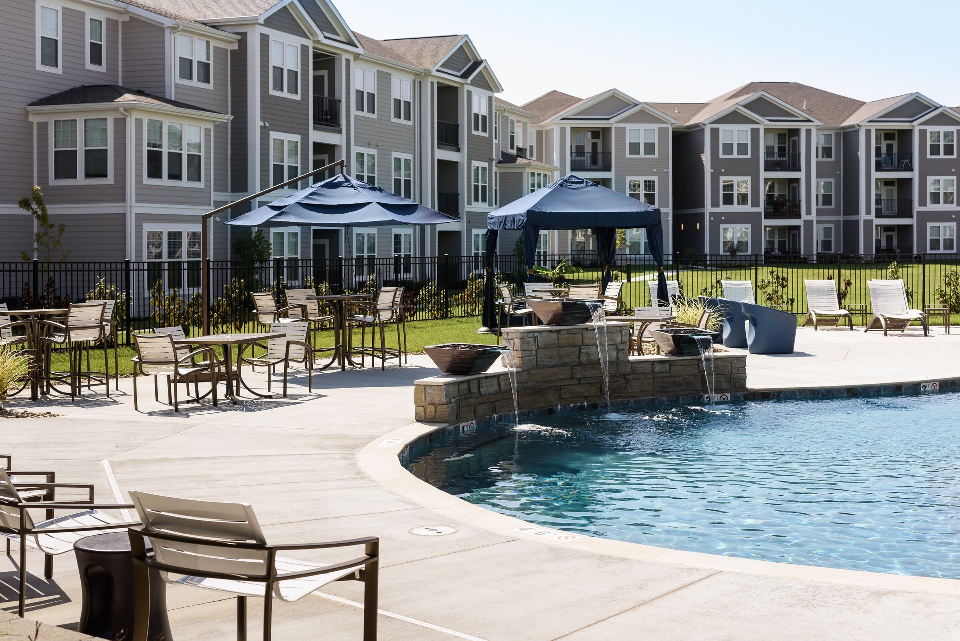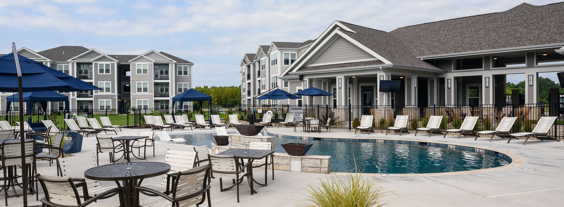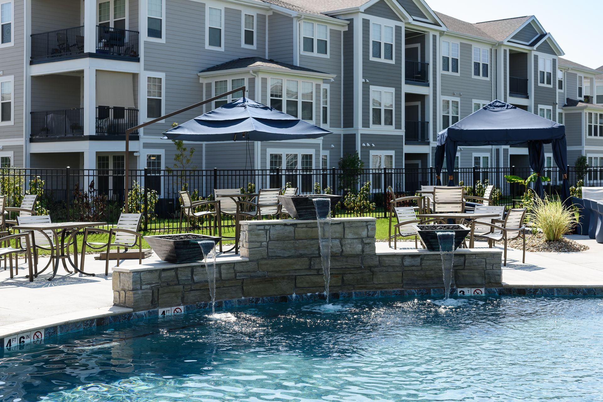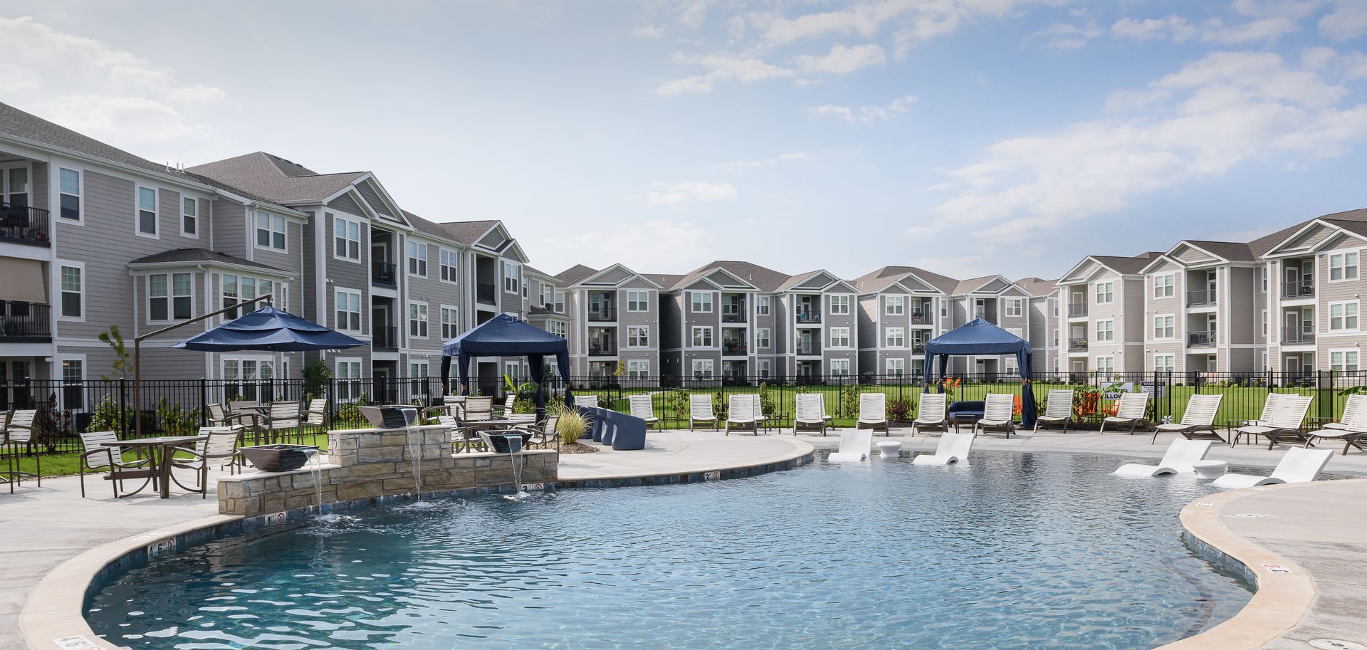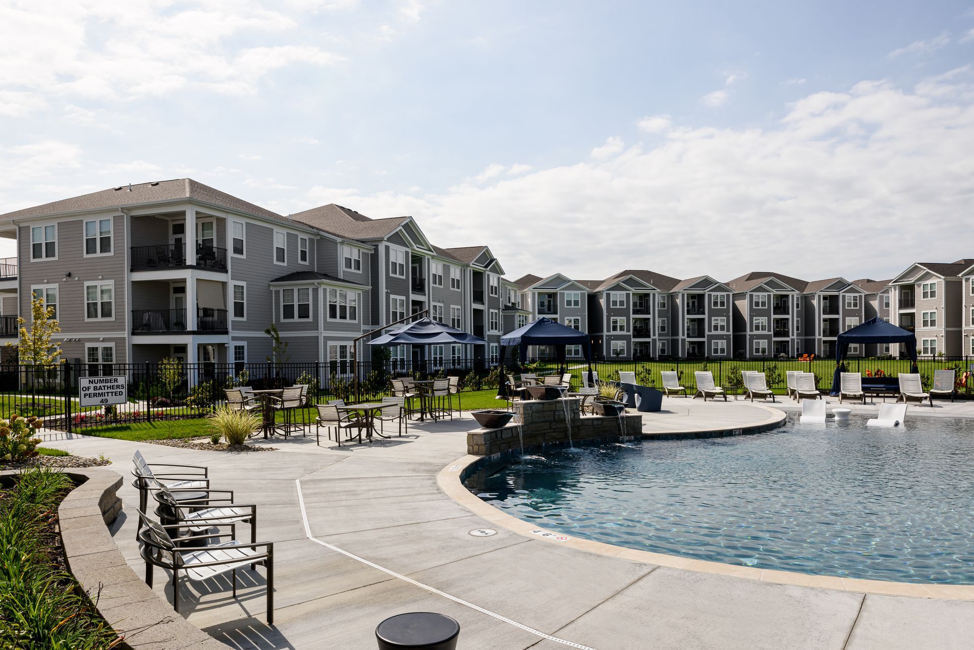 At Altair at the Preserve Apartments in O'Fallon, MO, breathtaking views and modern luxury await. Enjoy lush green spaces, a pet-friendly park, and a stylish yoga studio. Picture cozy evenings by the fire pit or lounging in private poolside cabanas. Imagine your life in our beautifully designed homes!